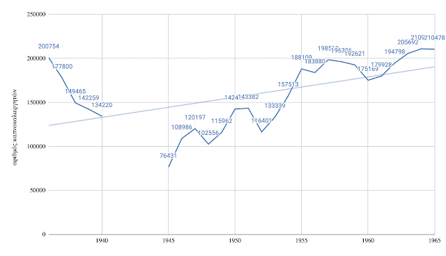 αριθμός καπνοκαλλιεργητών, εθνικό επίπεδο (1936-1965)